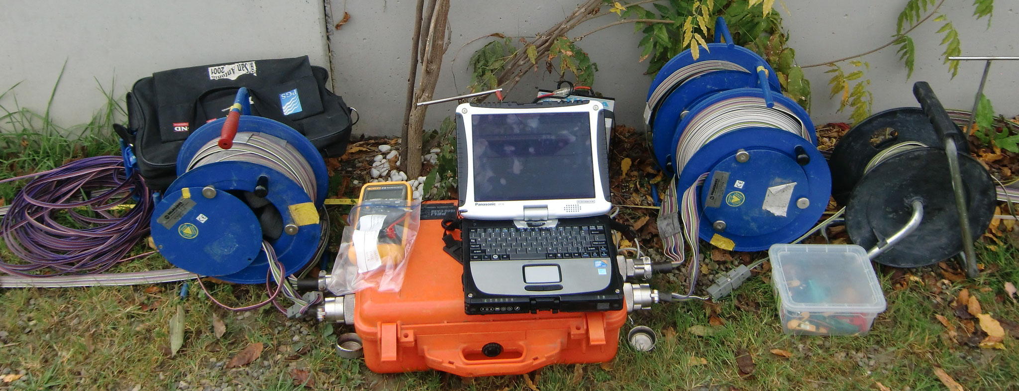unterschiedliche Widerstände entgegen. Eine geoelektrische Messanordnung besteht aus je zwei Elektroden für die Stromeinspeisung und zwei Messelektroden. Für ein hochauflösendes Widerstandsbild